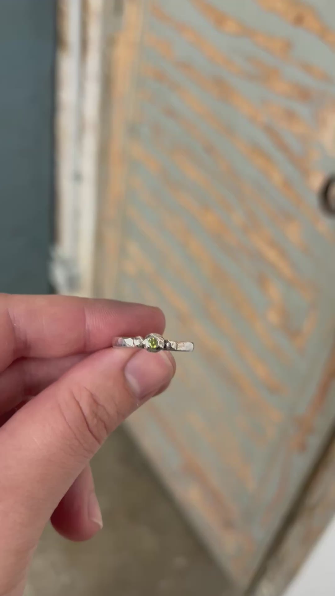 Elevate your style with Selma, a handcrafted ring made of sterling silver. Its unique hammered design, adorned with a sparkling circonita gem, adds a touch of elegance to any look.